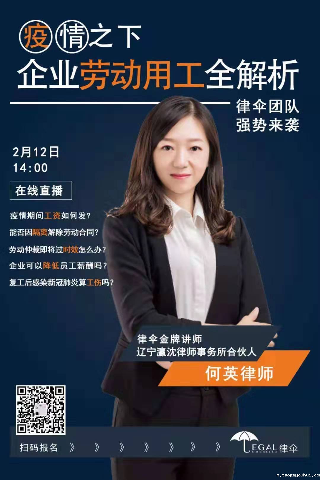2月12日下午14时,伟德平台官网首页携手律伞企业专属法务部、辽宁瀛沈律师事务所针对防疫期间企业咨询的高频劳动相关法律问题开展线上专题讲座——“疫情之下企业劳动用工全解析”。