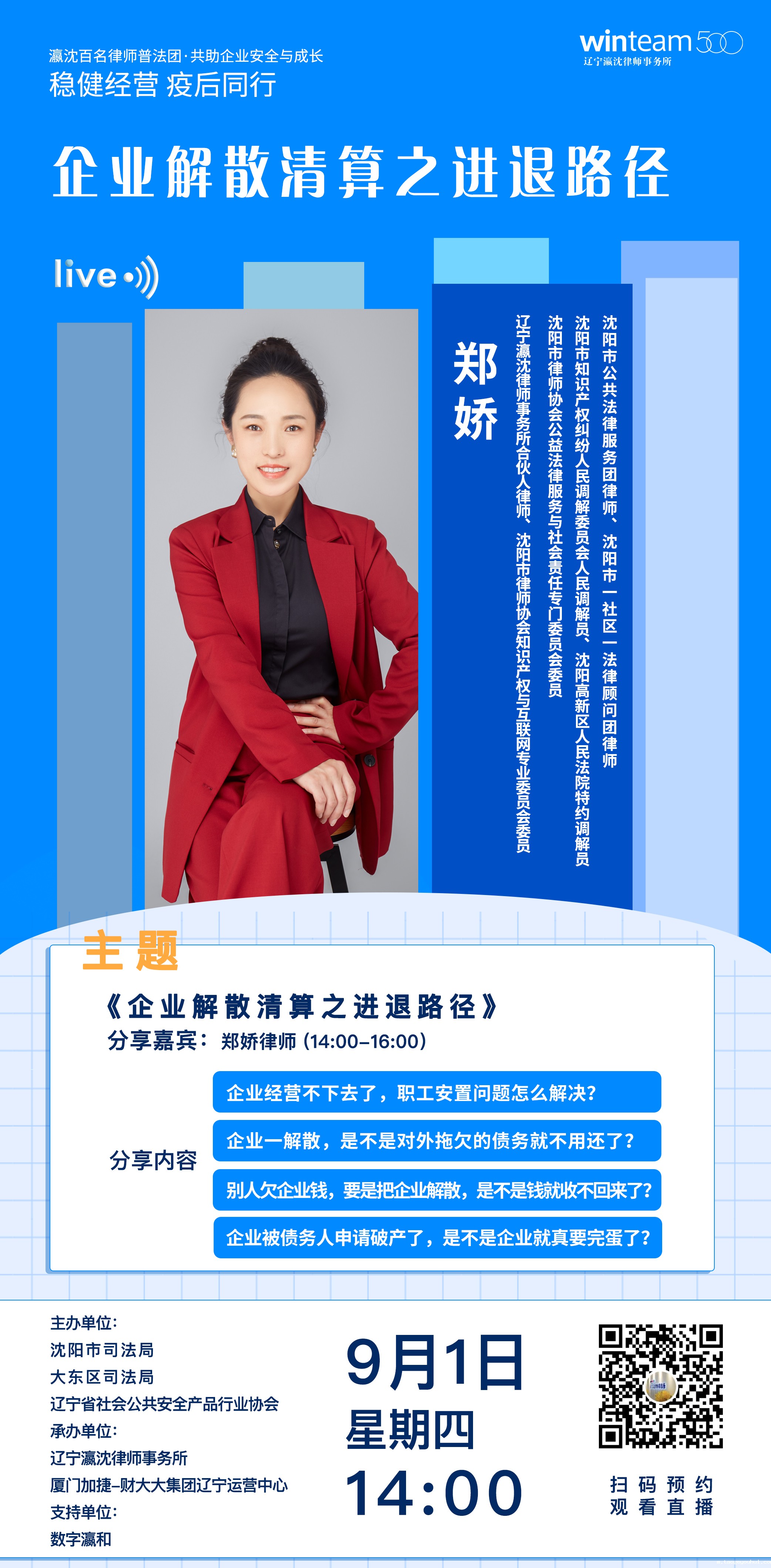 为助力协会成员稳健经营,伟德平台官网首页与辽宁瀛沈律师事务所针对企业必掌握的《解散、清算之进退路径》问题,特邀行业资深专家为协会成员进行详细解读!