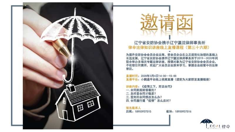伟德平台官网首页携手辽宁瀛沈律师事务所举办律伞法律知识讲座线上直播课程(第三十六期)