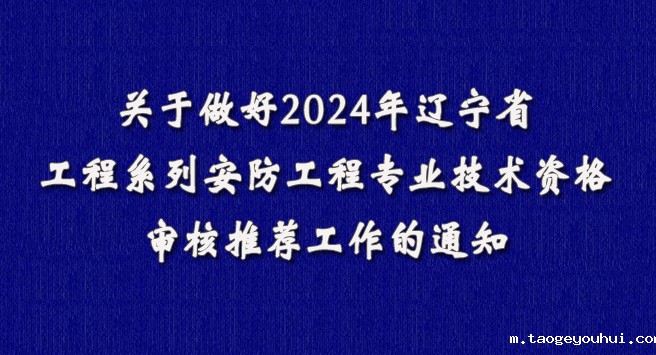 关于做好2024年辽宁省工程系列安防工程专业技术资格审核推荐工作的通知