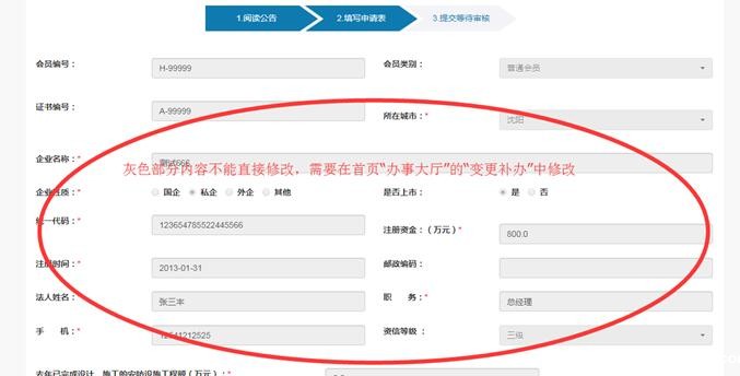 3、年审页面中所有灰色部分,均不能直接填写或者修改,如需补充或者修改,需要在首页“办事大厅”的“变更补办”中办理(参考下文中的变更流程)。
