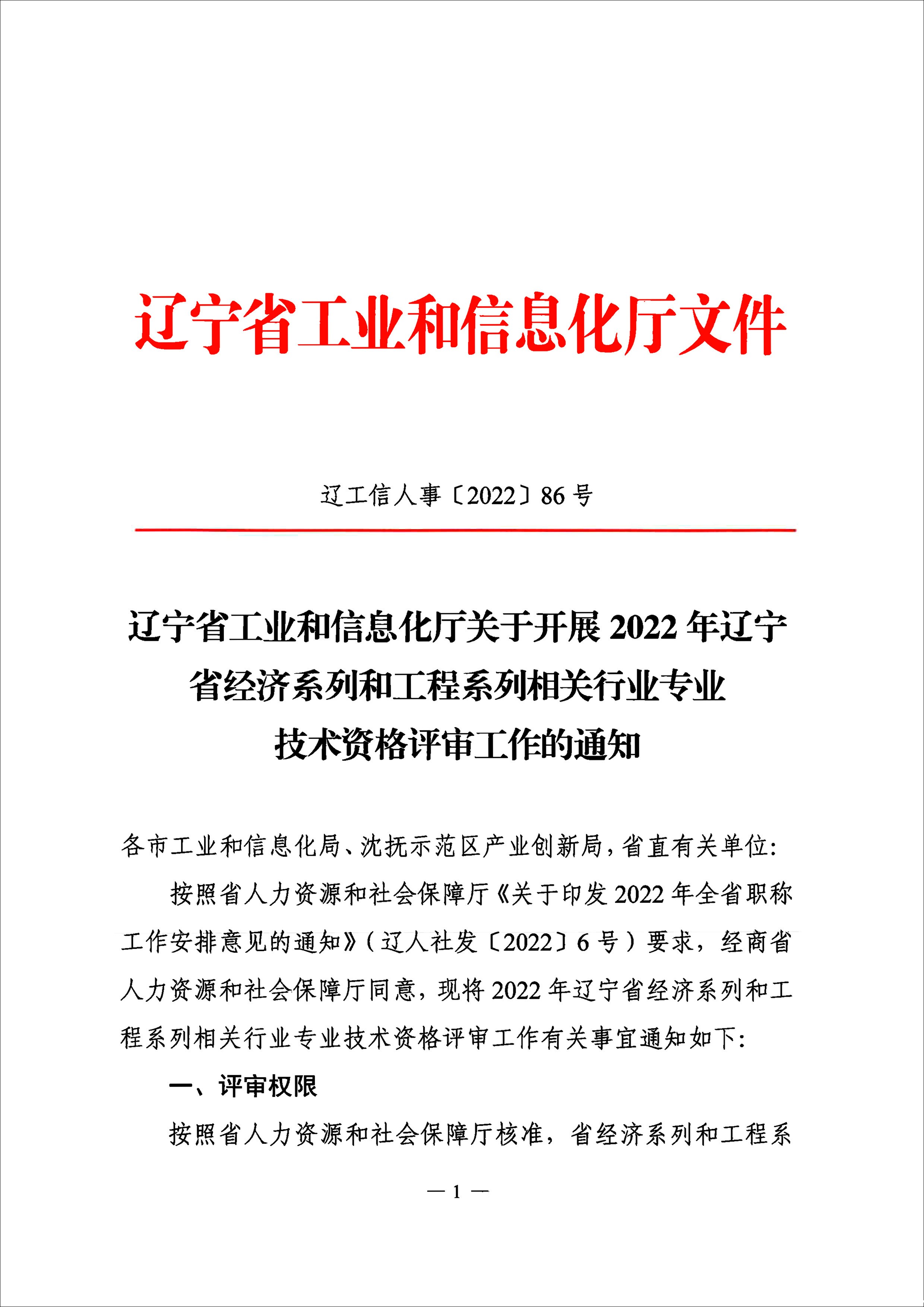转发:辽宁省工业和信息化厅《关于开展2022年辽宁省经济系列和工程系列相关行业专业技术资格评审工作的通知》