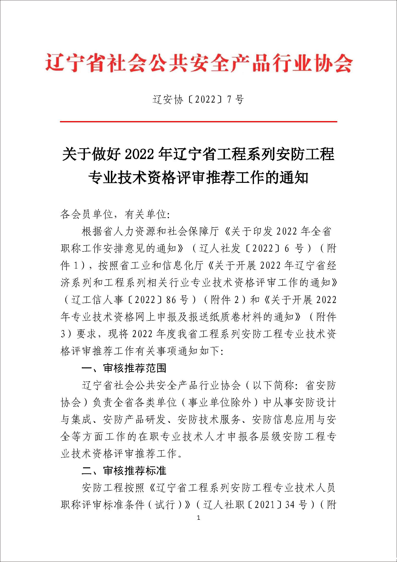 关于做好2022年辽宁省工程系列安防工程专业技术资格评审推荐工作的通知