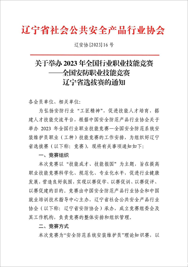 关于举办2023年全国行业职业技能竞赛——全国安防职业技能竞赛辽宁省选拔赛的通知