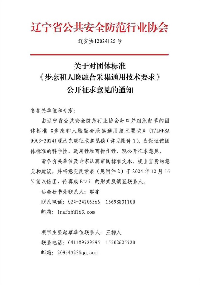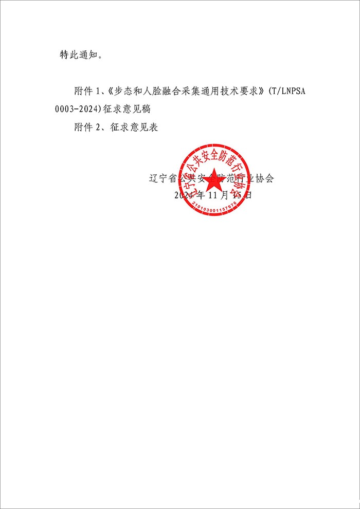 关于对团体标准《步态和人脸融合采集通用技术要求》公开征求意见的通知