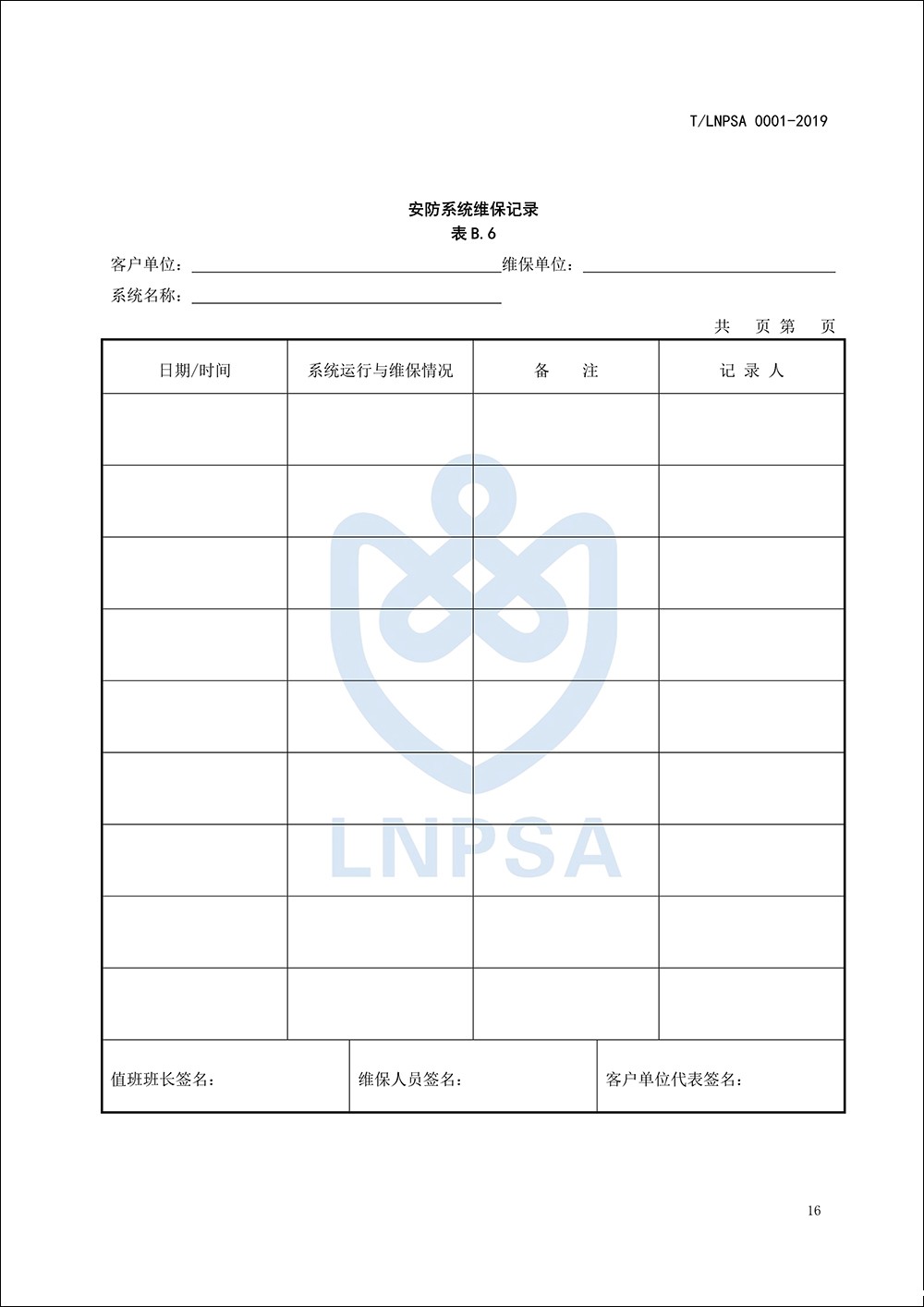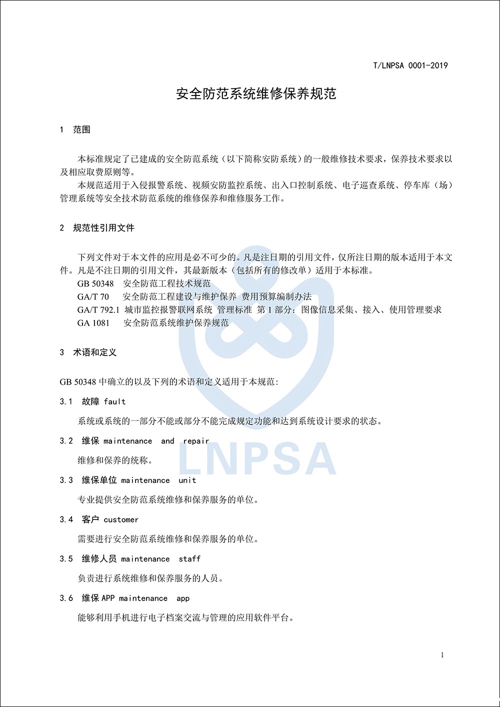 辽宁省社会公共安全产品行业协会安全防范系统维修保养规范
